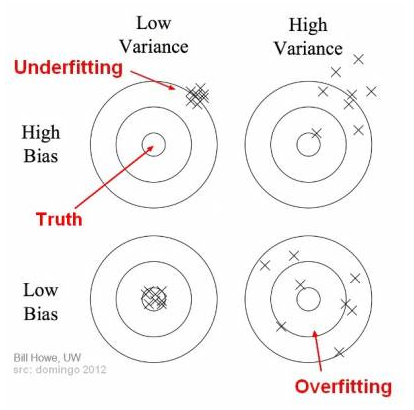 - Bias - the difference between the average prediction of model and the correct value(center of Target)