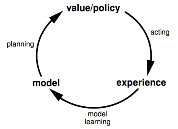 - Learn a model from experience - Plan value function(and/or policy) from model |